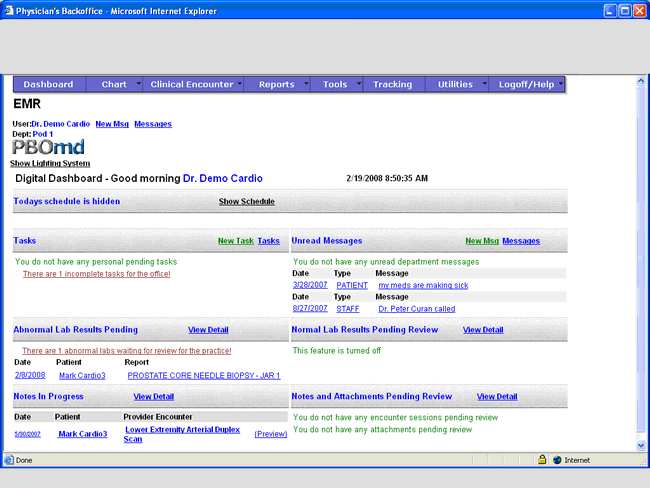 - All aspects of the patient's chart can be viewed, enabling office staff to quickly access records, route tasks and orders, send documents to 3rd parties and expedite patient care.